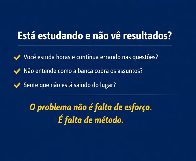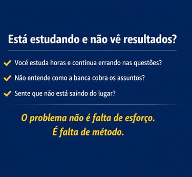 Você estuda muito, mas ainda erra, não entende a banca e sente que não evolui. O problema não é falta de esforço, é falta de método.